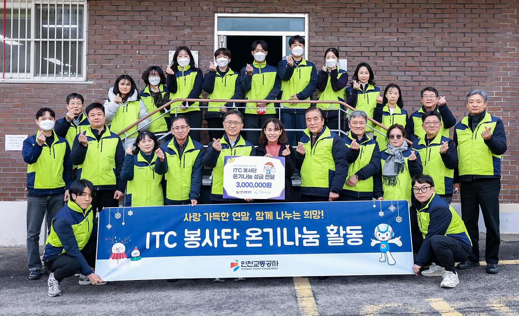 인천교통공사(사장 최정규)는 12일 연말을 맞아 지역사회 소외계층을 지원하기 위한 ‘온기나눔 활동’을 실시했다고 밝혔다.