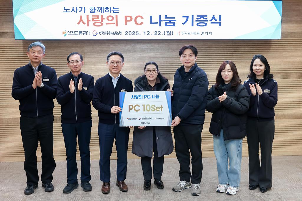 인천교통공사(사장 최정규)는 인천교통공사노동조합(위원장 김현기)과 함께 22일 정보취약계층 지원을 위해 사단법인 한부모가족회 한가지에 ‘사랑의 PC 나눔’ 사업을 통해 PC 10세트를 기증했다고 밝혔다.